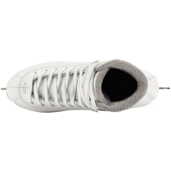 In the upper part, hooks are attached to the eyelets of the laces, just like on standard figure skates. The ankle is cut in a V shape, for greater comfort.