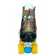 The shoe is directly connected to the durable aluminum die-cast chassis, which provides durability and good energy transfer to the rebound. Soft outdoor wheels in combination with Abec 5 bearings and a length-adjustable brake make the skates a perfect starting set.