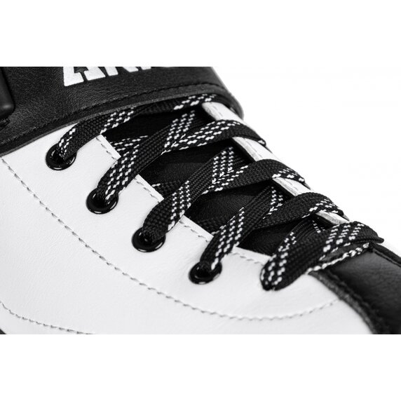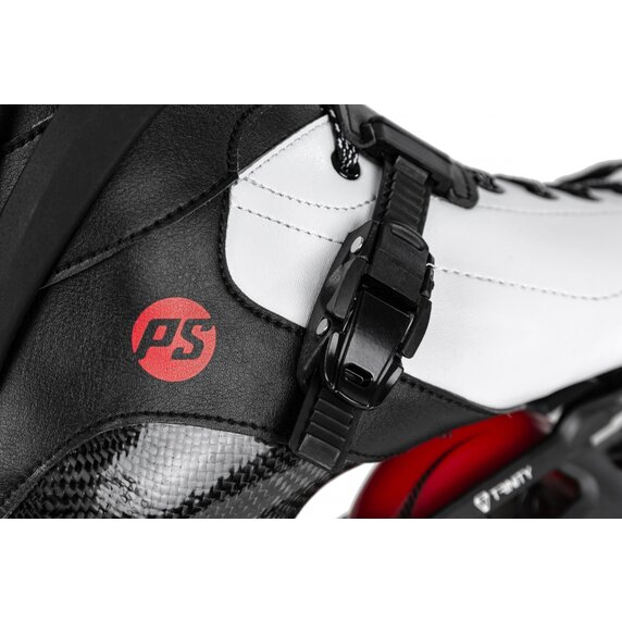 The shoe is shaped by hand and made of carbon for maximum energy transfer. You can tighten the skates using classic laces and two clips. The ankle is made of plastic reinforced with fiberglass for maximum strength.