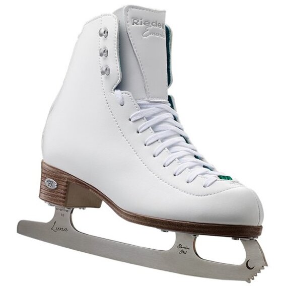 Riedell 19 Emerald White Junior are high-quality, children's figure skates with a classic design. They have a raised heel and classic lacing. They are suitable for more advanced skaters as well as for beginners.